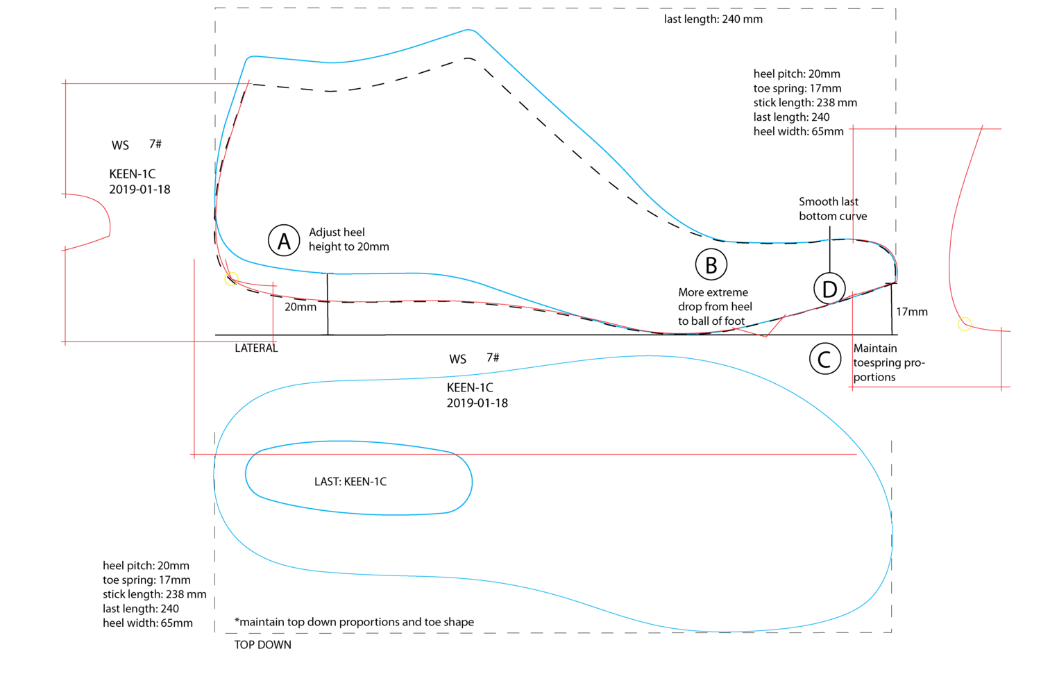 A new last was developed to address existing underfoot comfort & fit issues. By dropping the ball of the foot, adding additional cupping to the heel and more arch support the new last & tooling work to create a more comfortable outdoor experience.
