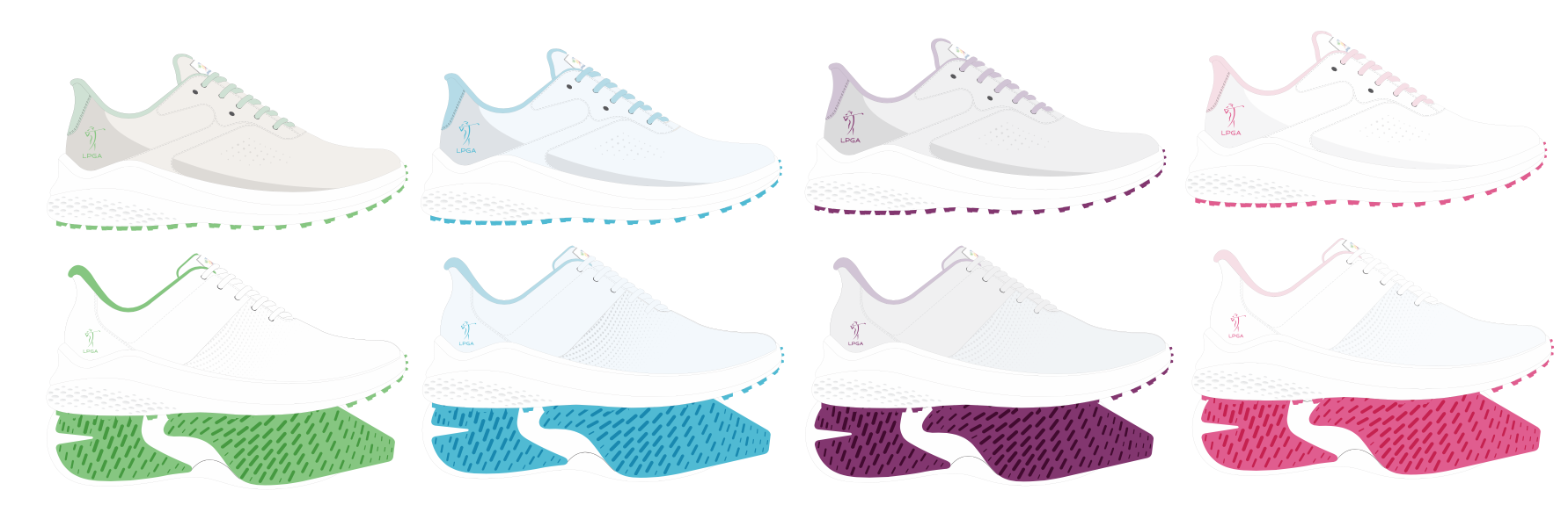 Multi layered uppers with smooth texturing and TPU overlays that create opportunity for color application and added performance. Synthetic majority upper for duty and easy to clean features, preppy classic minimal and modern design language with a nod toward fashion.