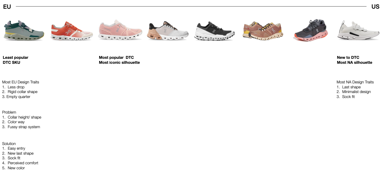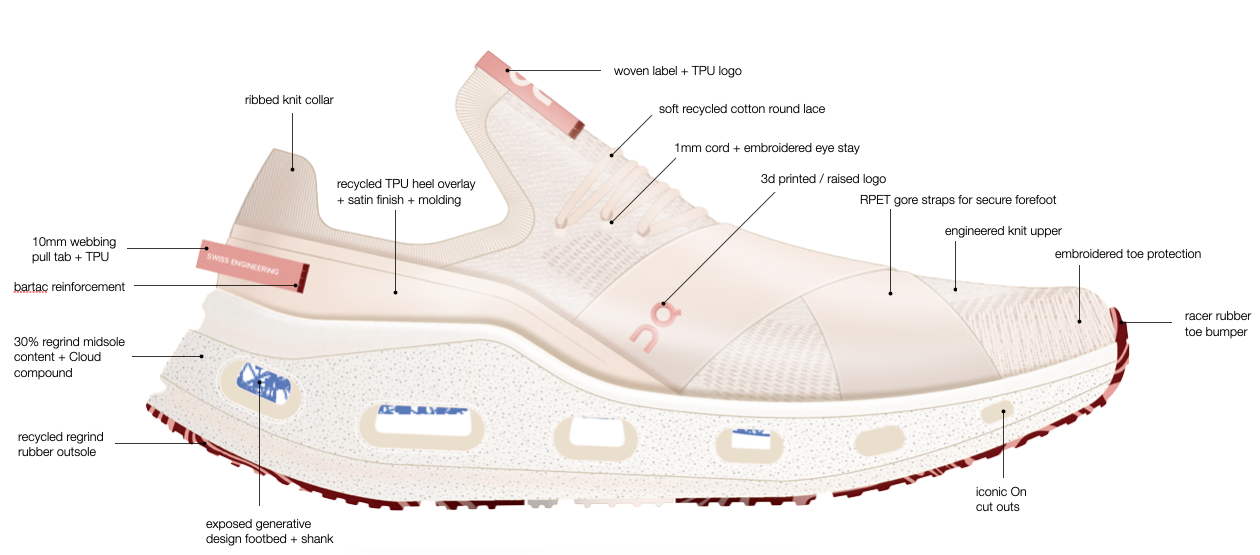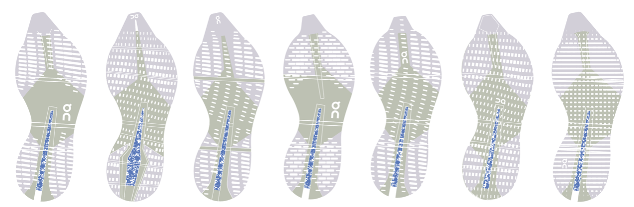 Engineered reductive design is at the root of On’s tooling DNA, elaborating on that core design principle to introduce more organic but structural forms. Exposed lattice structures and architectural cut outs will inspire the tooling direction. The introduction of slightly softer lines will push technical aspects towards the US market.