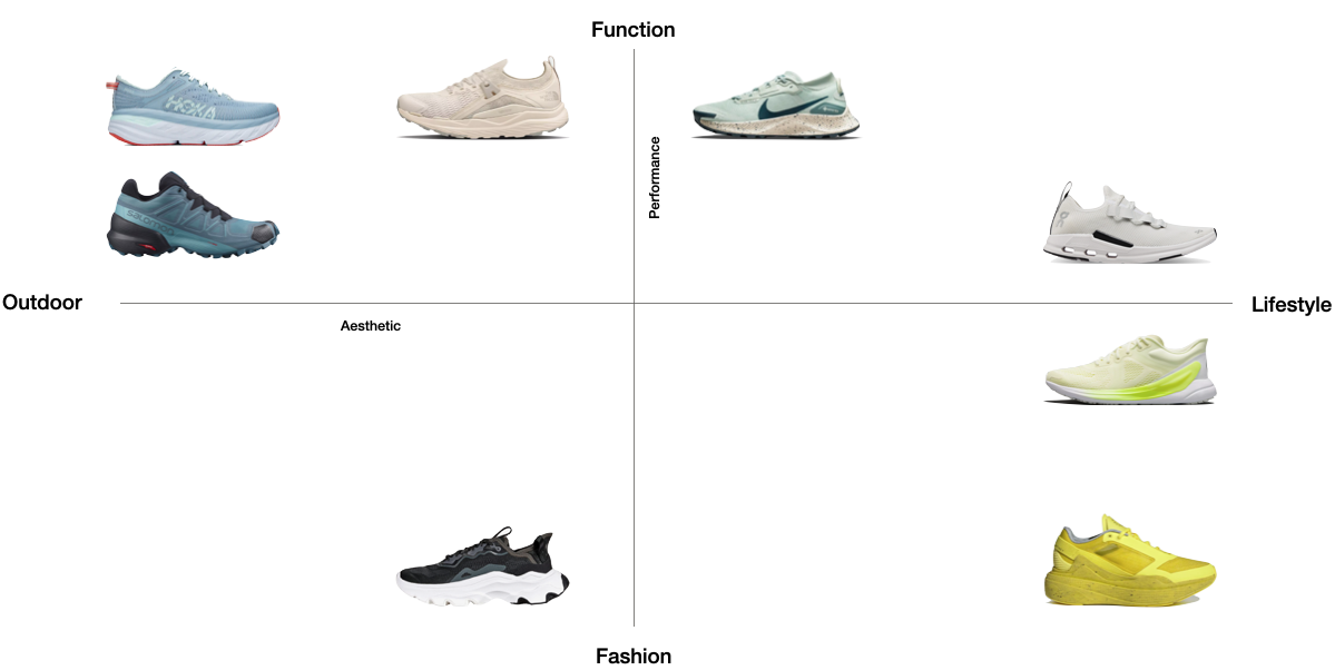 EMERGING CONCEPTS: Maximalist footwear has grown in popularity within the running market however it’s not purely for aesthetic reasons, unlike chunky trends in fashion footwear, brands like Hoka and VF make an argument for perceived out of box comfort and underfoot cushion. From entry level outdoor enthusiasts to performance trail seekers consumers are gravitating towards elevated products for a range of activities.